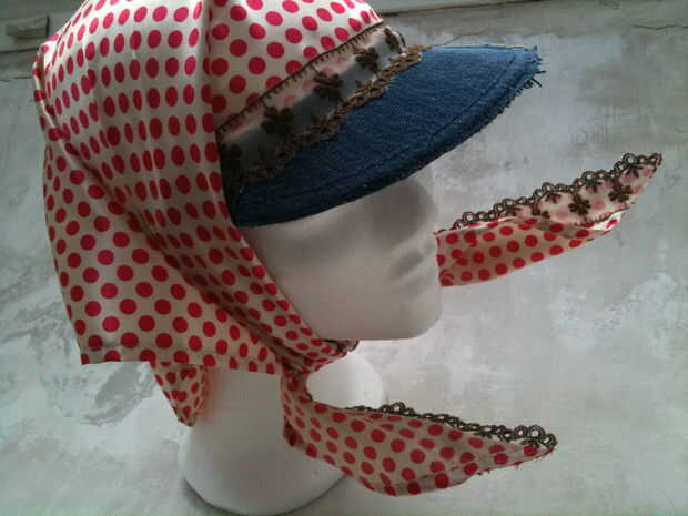con un pañuelo, toalla de té o paño vintage, puede coate un plástico de la válvula con los pantalones vaqueros y terminar con cinta o cordón. Anudar la tela de diferentes formas para diferentes estilos!Paso 1: hacer la válvula interior y patrón Usar