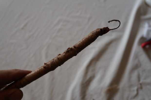 Doble un pedazo de alambre en un gancho y fijarlo a un extremo de la tubería. Esto se enganchan en el apoyo realizado en el paso 1.