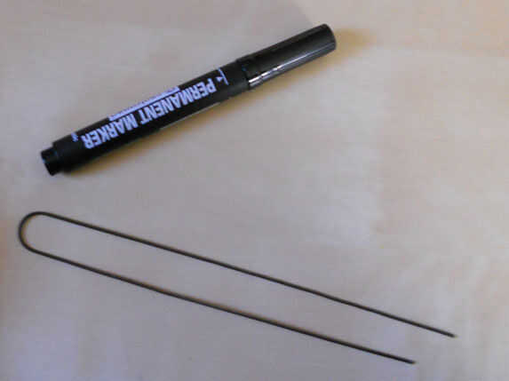 Tomar una varilla y dóblela por la mitad alrededor de un 0.5" pulgada taco/objeto (rotulador en imagen). Debe doble vuelta sobre sí misma. Esto formará las dos piernas de torreta delantera y un poco "respaldo" para el huevo en.