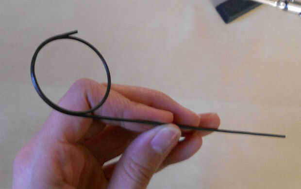 Tome el cable sobrante en el anillo (o un cable nuevo) y doblarla hasta conseguir la forma detrás de la pierna. Un taco de 0,25" pulgadas pueden ser utilizado. Utilicé un bolígrafo.