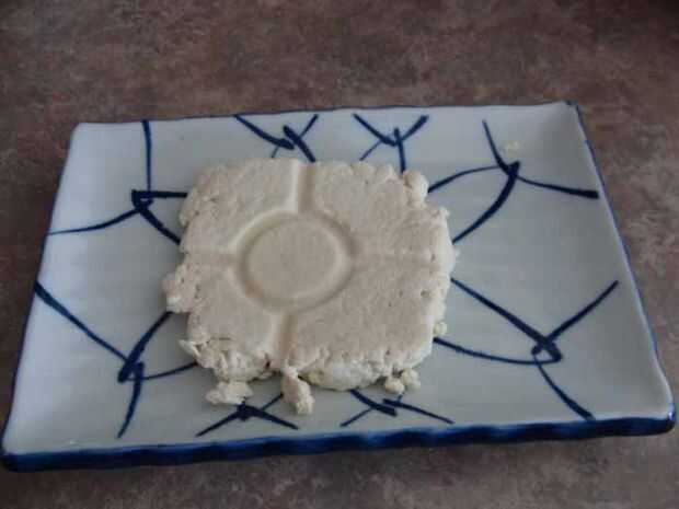 El tofu ya está terminado, retire cuidadosamente el peso y la parte superior del molde para revelar un bloque perfecto de tofu fresco!