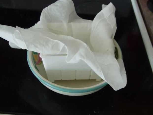 Utilicé un molde de tofu pero puede utilizarse cualquier recipiente como tiene un drenaje en la parte inferior para permitir que el suero drenar.
