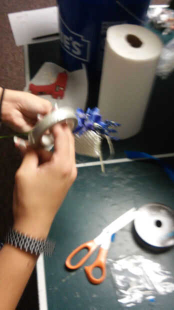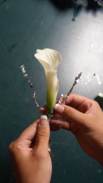 Cuando esté satisfecho con el aspecto de las flores usar parte de la cinta floral y cinta alrededor de los tallos apretado lo suficiente para que las flores no se mueven.