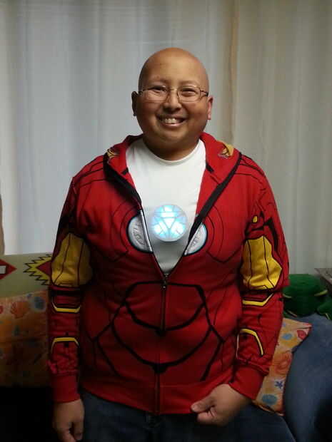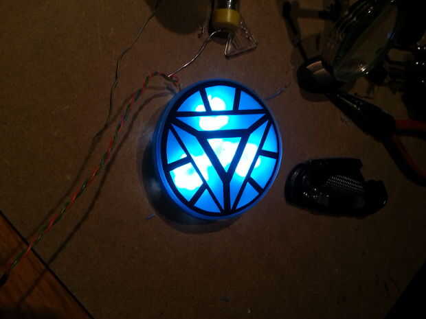 Coser el reactor en la camisa, usar otra camisa blanca (y un hombre de hierro) para completar el look.