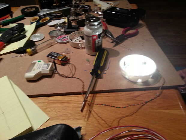 Poner cinta eléctrica alrededor del desagüe del plato para enfocar la luz interior y no a través de pequeños orificios en el desagüe.