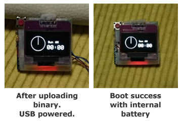 Si se completa la carga, el logo de RetroWatch Arduino y el logotipo de Adafruit (el fabricante OLED) tienen que visualiza en la OLED. Tras el logo de fase pasa y tiempo aparece "00:00″, la inicialización perfectamente tiene éxito.