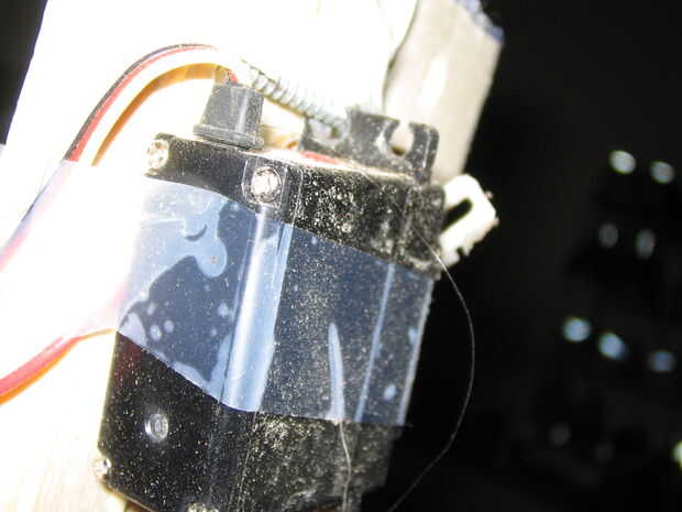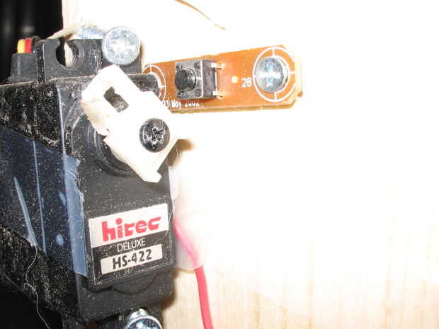 El segundo servo es un poco más complicado. Primero tiene que montar ese interruptor que va a la pistola de aire suave en una de las piezas de madera que es perpendicular a la base más pequeña. Ahora viene la parte difícil. Tienes que montar el servo para que el cabezal de torneado girará y empuje el interruptor, esto toma unos minutos de ajustar. (La cinta podría ayudar con esto)