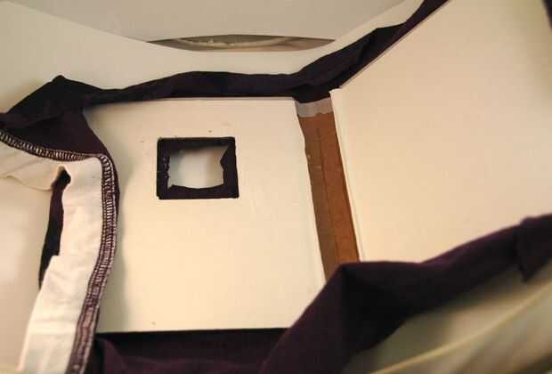 Para el marco de la ventana, corte un agujero cuadrado en el centro de la ventana, dejando 1/4" de tela todo alrededor. Cortan una diagonal en cada esquina de la raja. Era fácil entonces doblar cada lado hacia atrás y pegar hacia abajo.