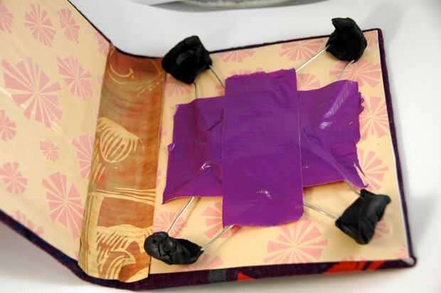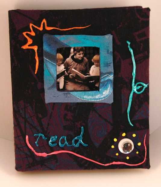 También sentí que quería añadir más "pop" a la cubierta, que hice con una etiqueta engomada de la bóveda y la pintura de tela.