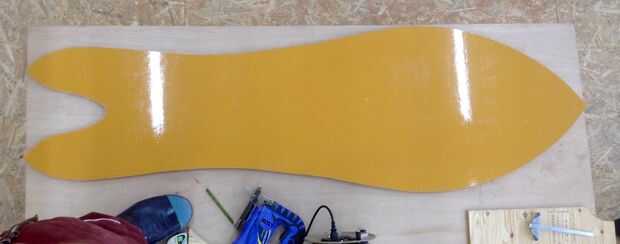 Ahora, una parte ha retirado de la punta de la nariz a la punta exterior de la cola (el espacio entre las colas de dos clavijas vino por último), pronto se hizo evidente que la forma más fácil para conseguir la simetría más cercana a perfecto, era utilizar la pieza había de cortar como una plantilla para trazar una nueva línea de corte.