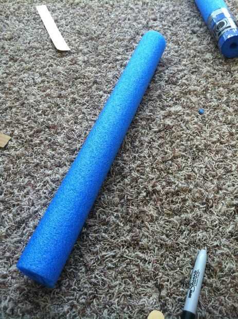 Usted puede comprar casi cualquier color de los tallarines de la piscina barato en las tiendas de $1. Necesitará empezar cortando por la mitad.