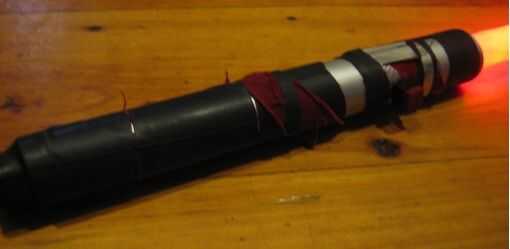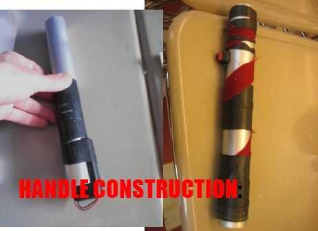 3) cortar tubos interiores de cilindros de longitud deseada y apretar sobre mango para hacer las asas. Un padawan hizo un cinturón y un soporte de tubo interno demasiado (envolviendo y empatando alrededor de su cintura.)