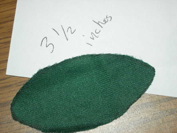 Empezar por cortar tira primera y el segunda del material. Mida y marque 2 tiras de 3 1/2" de largo y un poco de huevo en forma llegando a 1 1/4" en la sección más amplia. Consulte a continuación.
