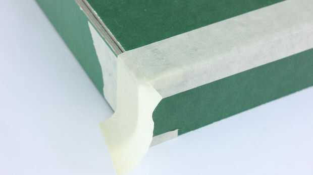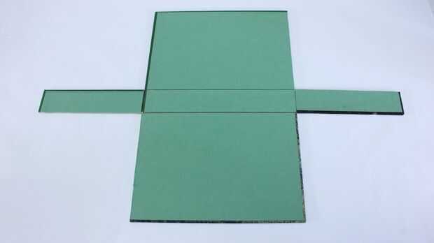 Ahora necesita los lados juntos para hacer la caja de la cinta. Empezar poniendo las cinco piezas de lado a lado en la superficie de trabajo. Luego se aplican las tiras de cinta adhesiva para sujetar cada una de las piezas laterales a la pieza posterior.