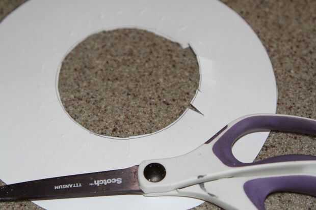 Ahora para el ala del sombrero. Básicamente vamos a hacer una forma de rosquilla. Para obtener su círculo interno de encontrar algo así como una placa que es alrededor de media pulgadas más pequeño que la abertura de su sombrero. Ahora encontrar algo cerca de cinco pulgadas más grandes que el sombrero este hará que el borde externo del sombrero. Corte su forma de Donut.
