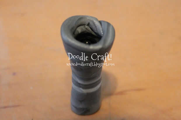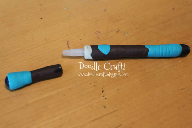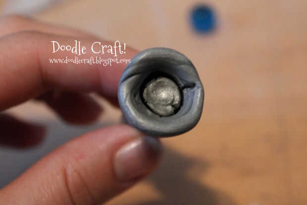 poner una bola pequeña de barro interior y presiona suavemente con la otra pluma.