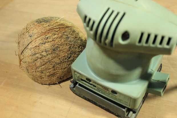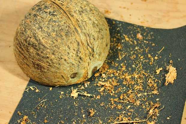 Utilizar la lija para suavizar los bordes de la cáscara de coco, este paso es muy aburrido, pero necesita paciencia para ver cómodo, esto puede tomar mucho tiempo.