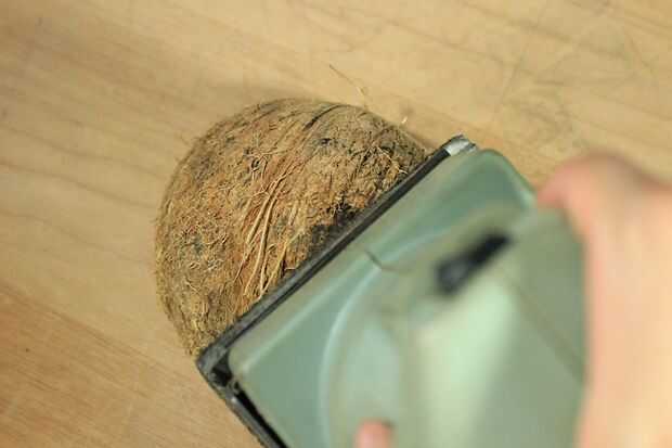Luego frote con lana de acero hasta que se quedan con una cáscara del coco liso, limpio.