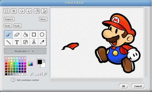Me di cuenta que no pude encontrar a un Mario caminando, así que decidí hacer mi propia a la que salta Mario. Primero debe copiar a Mario saltando haciendo clic en copiar, luego haga clic en editar, eliminar el fondo de Mario y copie su brazo a la derecha y en el frente usando la herramienta Tampón. Ahora vas a trabajar en ese brazo no el pincel, sino la herramienta línea en g + w color. La razón de esto es que con el pincel tienes que tener mucho cuidado donde lo mueve como podría destruir toda la obra y usted tendría que pulsar deshacer y empezar de nuevo, mientras que la herramienta de línea sólo va donde dices que. Una vez hecho esto, Voltear horizontalmente, póngala a un lado y ponerse a trabajar en su brazo derecho que está detrás de él.