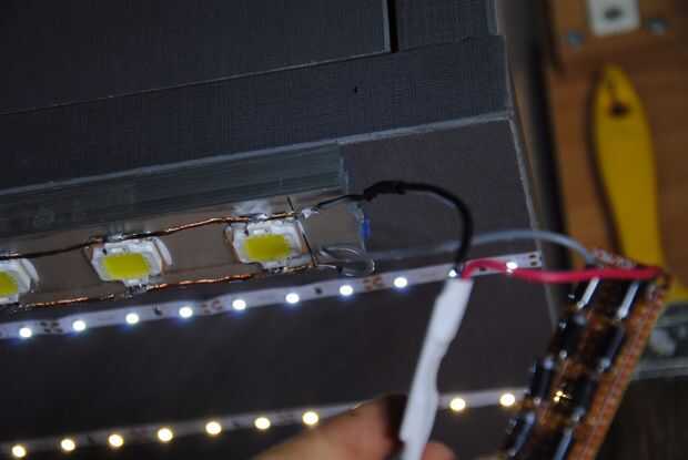 Terminó por soldadura-de la salida del atenuador a-del LED, y conecte el jumper gris el + lateral de los LED