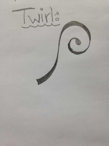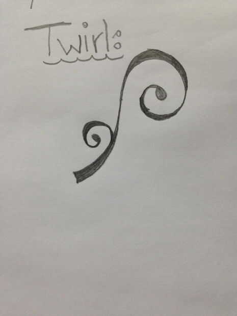 Molinete (foto 6 y 7): Esta es una característica muy simple, sólo tienes que dibujar una línea que termina en una espiral. Al final de la espiral termina en una caída en forma de lágrima. Una vez hecho el molinete grande debe agregar una espiral más pequeña en la parte inferior de los grandes giros. Esto es una copia exacta de la mirrowed minimizado, del remolino grande.