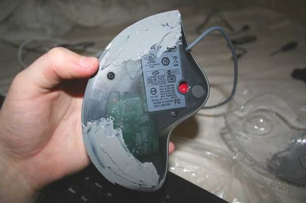 Una vez que estés satisfecho con el trabajo de soldadura JB, establece el teclado alguna parte plana por lo que el ratón no extraer y obtener la ubicación del ratón sin embargo le gusta. Recomiendo sentarse el teclado en su regazo y escriba en él un poco y asegúrese de que el ratón se siente bien, porque una vez seco su no ir a cualquier lado. Por suerte, JB weld toma un tiempo seco, por lo que tiene la mitad una hora más o menos para jugar con él.