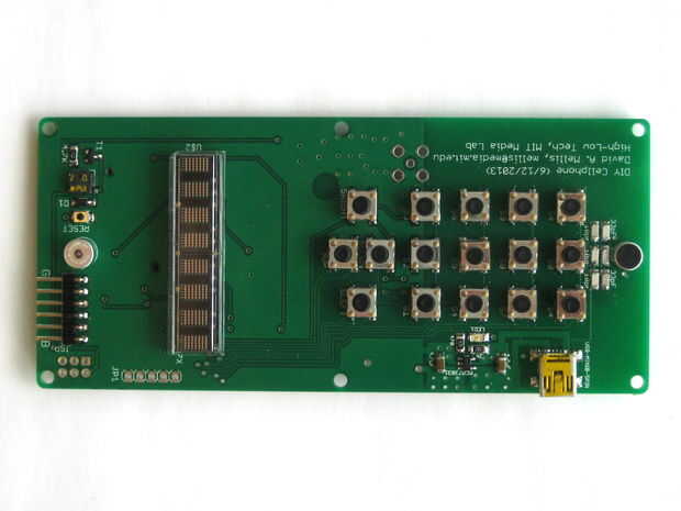 - Polaridad: otros componentes con polaridad incluyen el estupendo-condensador LED (Nota los dos pequeños puntos verdes por un lado), el microcontrolador ATmega1284P (nota el círculo en una esquina), el módulo GSM de M10 (que tiene una flecha en una esquina), el zócalo de la tarjeta SIM, el micrófono y el diodo (nota la línea gris pálida en un lado). Estos componentes no tienen ninguna polaridad (puede soldar cualquier manera alrededor): el cristal (8 MHz), altavoz, botón de reinicio, pequeños condensadores y resistencias. Otros componentes solamente físicamente alinean en una orientación, pero asegúrese de que los transistores no están boca abajo y que los botones no girado 90 grados.