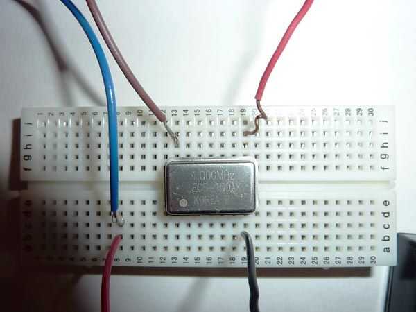 Para la figura anterior: el oscilador debe insertarse a través de la brecha en la protoboard.