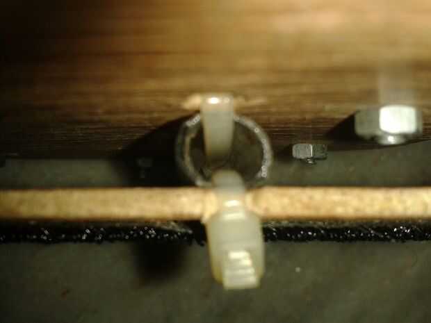 Inserte tornillos a través del marco superior e inserte el pasador de madera a través de los tornillos