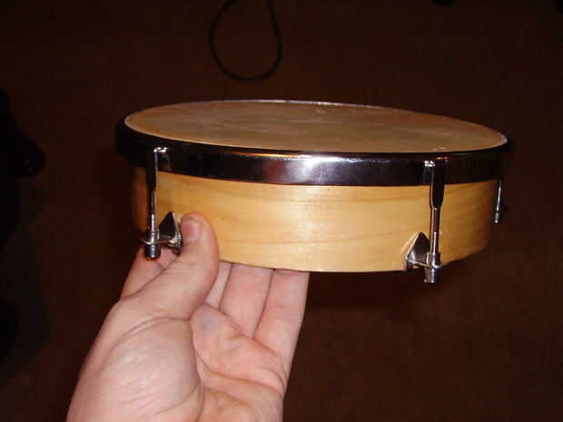 Un pequeño tambor. (Originalmente compré mío desde aquí. Que era ideal). Trate de buscar uno con un número desigual de clavijas de afinación como entonces, siempre habrá un espacio donde el cuello estará enfrente de un sintonizador donde va el tubo de desagüe.