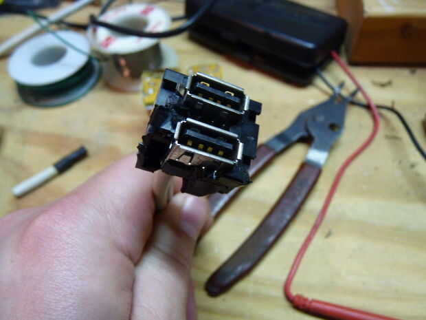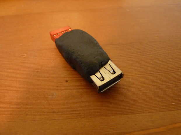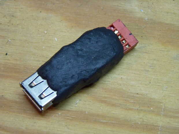 Otra vez, una vez que todo estaba conectado y probado, había cubierto todo en masilla epoxi. Espero que este adaptador me ayudar con solucionar problemas de puerto USB que he estado teniendo.