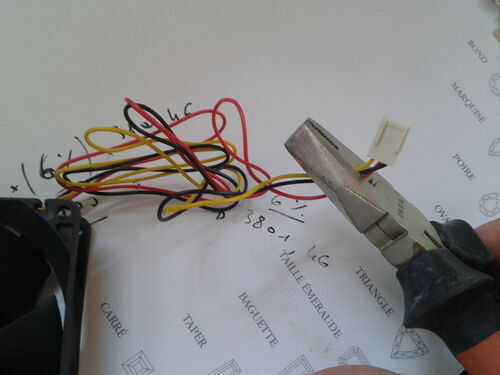 La première étape consiste à couper les fils noir et rouge (jaune de le est transformadoras) du ventilateur ainsi ceux du cable usb.
