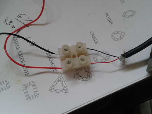 Il faut maintenant conector les cables électriques avec un serre-fils (ou domino). Signo le tournevis pour cela.