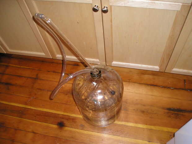 Utilizando el método de cubo paño desinfectar: Damajuana (fermentador secundario), sifón con manguera (chupar alguna solución a través de la manguera así) y el que revuelve el dispositivo.
