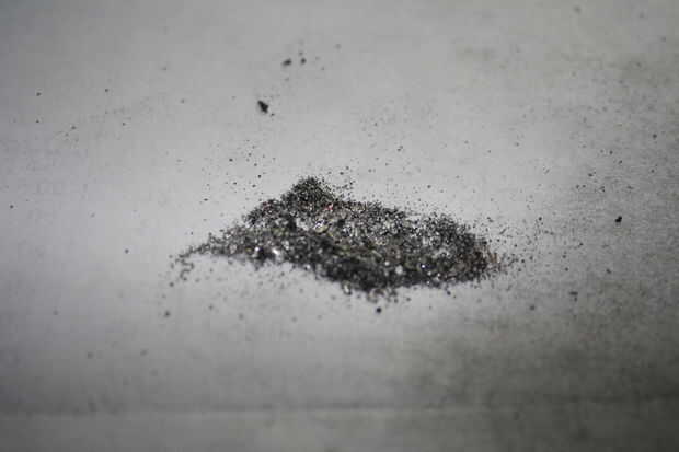 Cuando haya terminado de pulir, probablemente sería una buena idea para tamizar las partículas a través de una malla de algún tipo, no tengo uno a mano así que simplemente había recogido a través de con las pinzas y quitar las partículas grandes que no para moler.