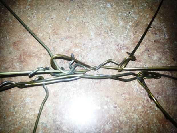 Para conseguir el lazo para sujetar correctamente hará que dos ganchos que bloquear y luego gire una de las longitudes restantes alrededor del borde del ala. La otra longitud del palillo recto hacia fuera y sirven como parte de su conector.