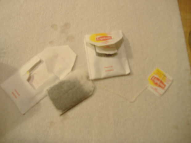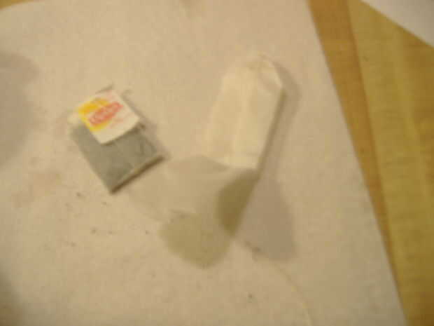 he encontrado estas bolsitas de té en mi despensa, pero cuando intenté hacer té de ellos he encontrado que realmente fueron llenados con un material marrón polvoriento, sin sabor en lugar de té. Desde que tuve un té de hojas sueltas en la misma despensa, decidí limpiar el polvo del té en bolsitas y sustituirla por té real, facilitando mi rutina de mañana. Si no tienes ningún saquitos llenos de polvo, siempre puede cortar aparte y doble filtros de café para hacer tus propias bolsitas de té.
