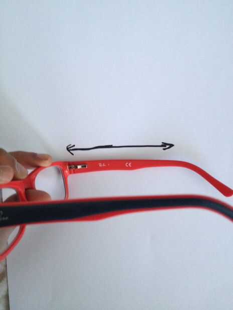 Medir la longitud de los palillos a partir en el interior cara de las gafas hasta el punto donde los palillos doblan abajo.