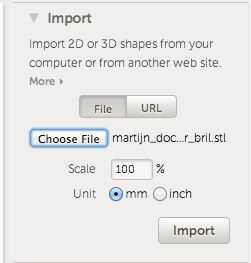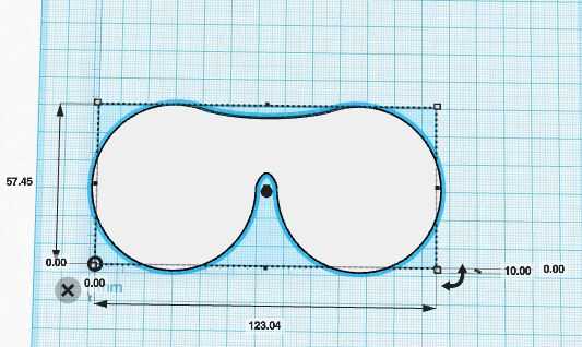 Hacer un diseño nuevo e importar el archivo SVG que creó: escala a 10mm de alto y 100%. Compruebe que el ancho coincida con sus medidas - con la herramienta regla bajo los ayudantes desplegable a la derecha. Asegúrese de que el espacio alrededor de las lentes es de 4mm como mínimo, otra cosa tienes piezas muy delgadas de los vidrios y luego podría romper fácilmente.