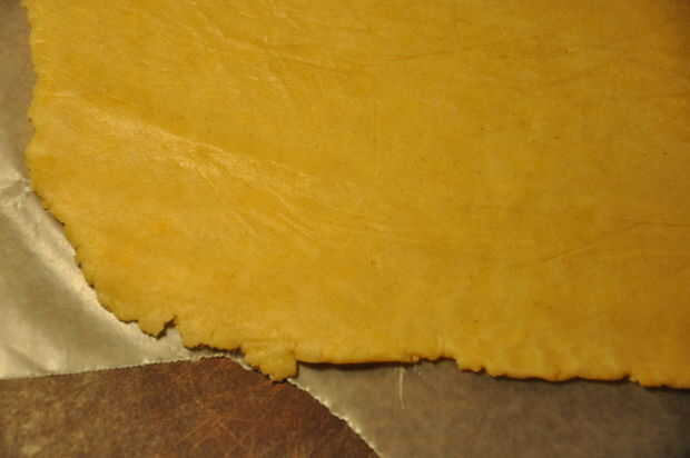 Estirar la masa entre dos hojas de papel de cera hasta alcanzar el espesor deseado.