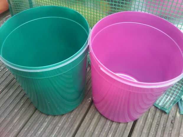 después de buscar alrededor de mi centro de jardinería local buscando algunas macetas y no poder encontrar ninguna que me gustara, me decidí a hacer mi propia. Me acordé de que mi tienda local vende dulces de tinas de plástico grandes, así que la siguiente vez que fui en pidió al tendero lo que hizo cuando las bañeras estaban vacíos. Su respuesta fue que él les tiró y si quería algunas i podría tenerlos gratis y si volví un tiempo de semanas que les ahorraría para mí. Una semana más tarde después de visitar la tienda otra vez me dieron 8. Luego fue a la poundshop en la ciudad y comprar 2 latas de spray de brillo en el color que yo quería. I taladrar unos agujeros en la parte inferior de la bañera para permitir el drenaje y les dio una buena limpia para eliminar todos los restos de dulce. Al día siguiente les di todos un par de capas de la pintura en el interior. (Asegúrese de que usted rocía el interior como si se rocíe el exterior usted no conseguirá el brillo). Fueron luego a la izquierda un día completamente seco antes de poner mis plantas en ellos. Podido hacer todas las 8 tinas con las 2 latas de aerosol y todavía tenía algunos aerosol izquierda. Ahora tenía 8 macetas coloridas y todo por sólo £2. Espero te guste mi instructable y si por favor voten por ella.