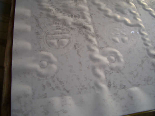 La siguiente parte será familiar para usted si alguna vez has impreso una placa de circuito. Después de que su plato se limpia a la perfección brillante, y usted ha examinado su impresión, es tiempo para adherir con calor prodigioso. Con cinta adhesiva las esquinas de la página a la hoja de cobre amarillo para sostenerla mientras plancha. Tenga especial cuidado en este paso, sólo tienes una oportunidad a este derecho. Encontrar un lugar resistente al calor para trabajar, como un banco de trabajo madera, o las medidas concretas en su porche trasero, o una vieja tabla de cortar madera. Enchufe la plancha y consíguelo ripeo caliente. Comienza presionando la plancha hacia abajo en la página, comenzando en el centro y trabajando hacia fuera. Tomó unos cinco minutos para hacer esta página, dejando el hierro en un mismo lugar al mismo tiempo presionando hacia abajo y luego hacia los bordes. Lo que sucede es que la tinta se derrite y se adhiere a la Junta bajo el calor de la plancha. Cuando se empapa el papel, el papel de ascensores y los restos de tinta.