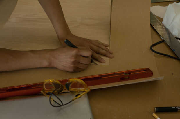 para mis tarjetas pegue dos hojas de vaneer espalda con espalda con granos perpendiculares a cada lado para aumentar la rigidez.