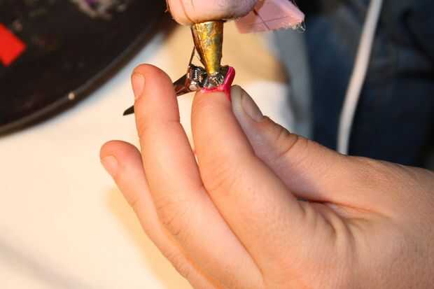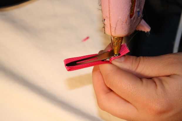 Luego aplica pegamento caliente a la parte superior de la pinza y coloque la cinta de opciones.