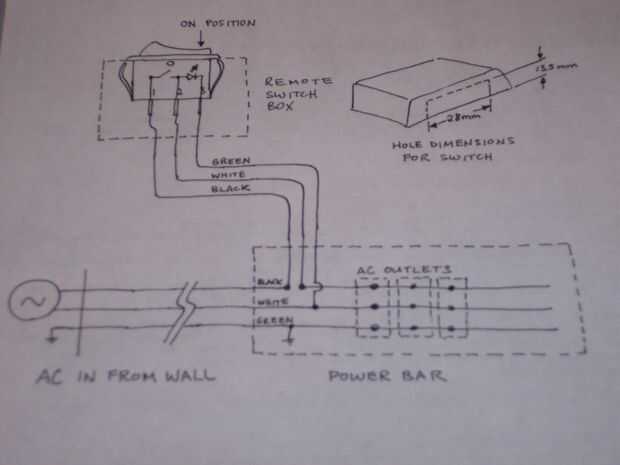 Efectivamente todo lo que necesitas hacer es empalmar el interruptor (pines 1 y 2) en serie con el alambre caliente (negro) que va a las salidas que desea controlar. El interruptor contiene también una luz. Un lado de la luz está internamente conectado al pin 2 y es alimentado por el alambre caliente. Al otro lado de la luz está conectado internamente a la clavija 3 y debe ser conectado al alambre neutro (blanco) dentro de la barra de energía.