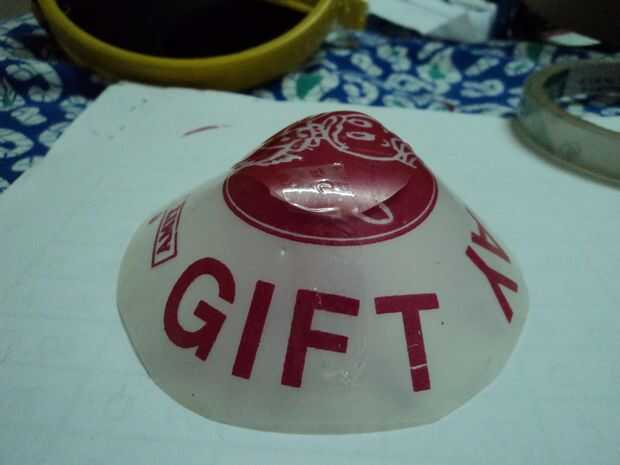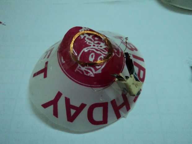 Luego use el diafragma del tambor de juguete viejo o algo similar a eso. Esto debería funcionar mejor que la de plástico de la taza y producen un sonido ruidoso, vibra más rápidamente. Tras hacer un cono de que aplane el extremo y repetir el mismo proceso como en el de la taza de plástico. Disfrutar de la música!