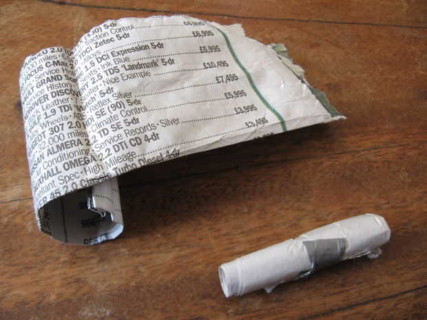 Enrolle firmemente por lo que se trata del mismo diámetro que el interior de la tubería y cinta adhesiva para no desenrollar.