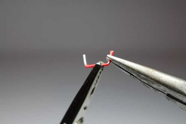 Cuando haya encontrado los clips, utilice los alicates de precisión para doblar los clips para que coincida con el tamaño de la brecha que desea rellenar en el protoboard.