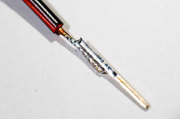 3. el estaño el alambre no-aislado. Use la lata un poco más de lo habitual, ya que se utilizará para conectar el pin más adelante.