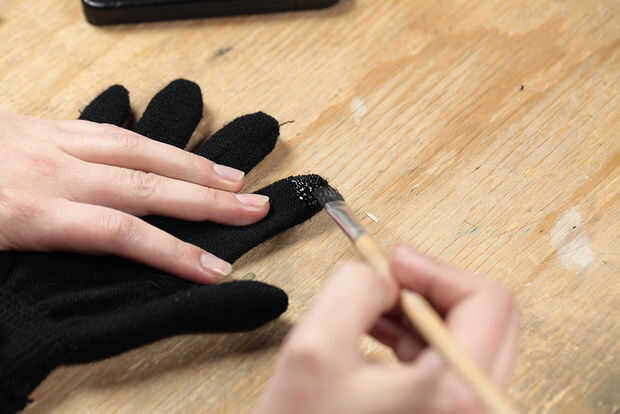 Con su pincel, aplicar esto en la punta del dedo índice de su guante.